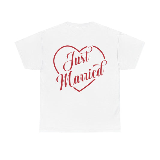 Just Married T-Shirt – Romantic Heart Wedding Tee for Newlyweds