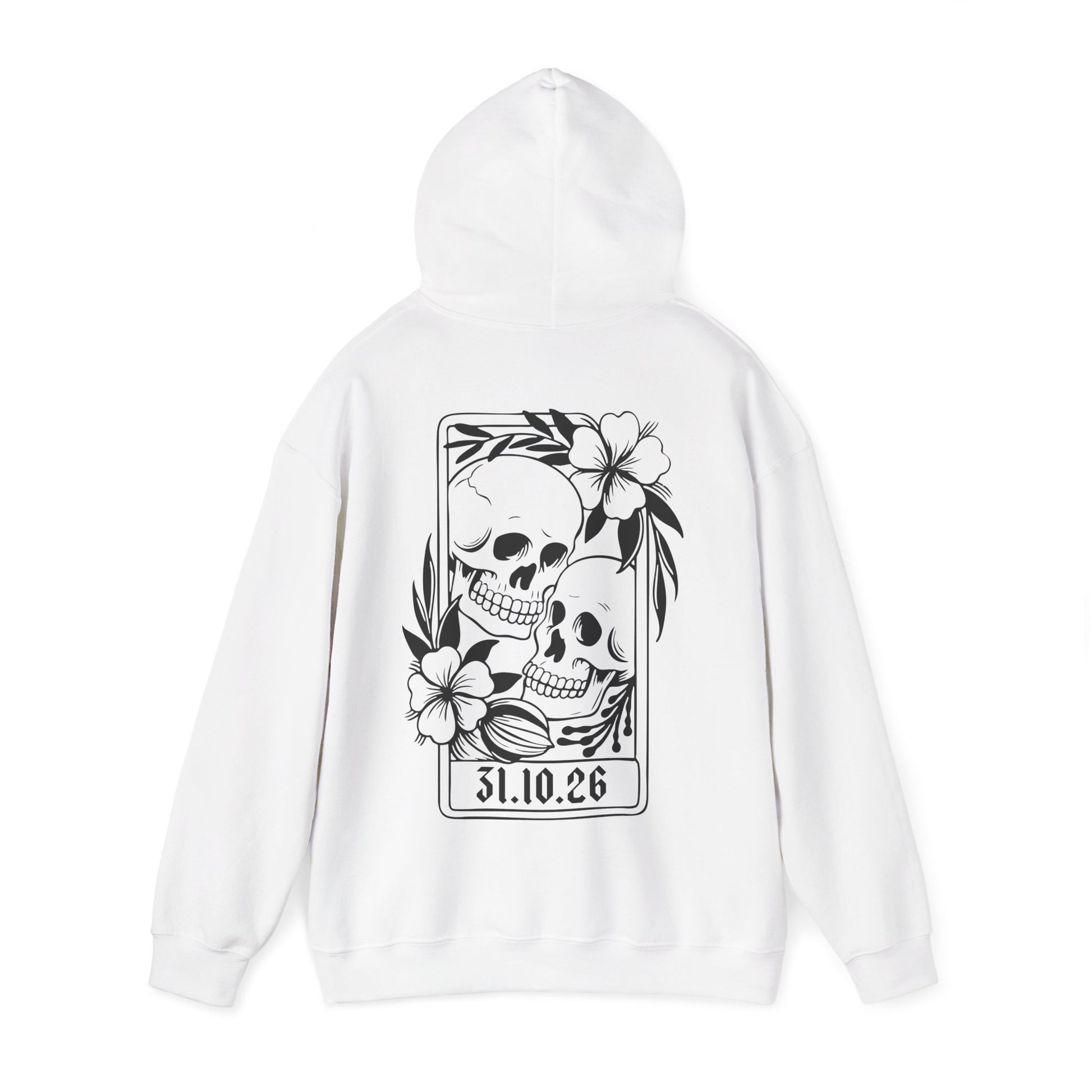 Customised Bride Skull Tarot Hoodie - Gothic Bridal Pullover Jumper with Floral Skulls & Date