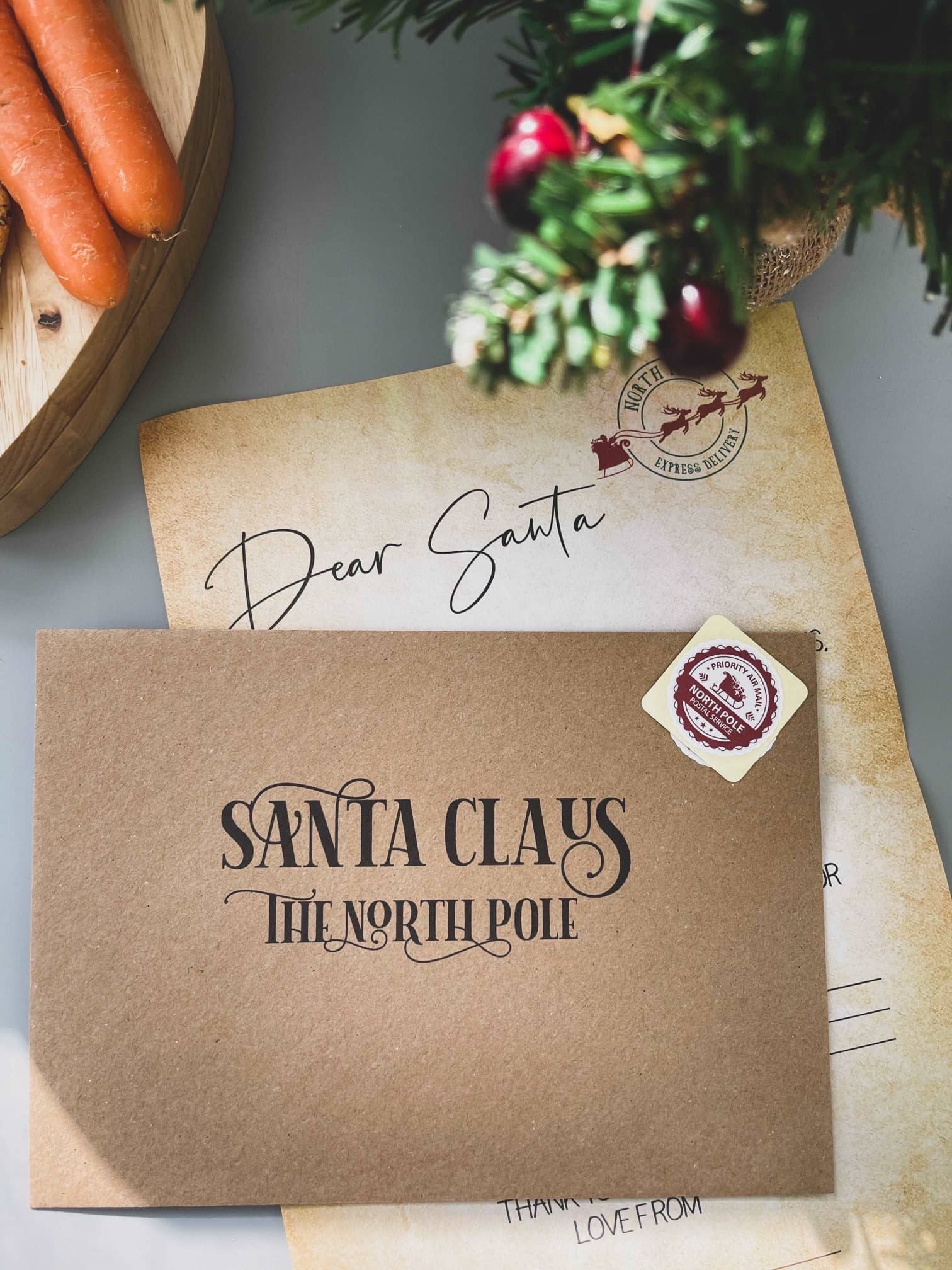 Each letter is printed on vintage style paper and include a personalised envelope with your child’s name. A Christmasy font is used for the personalisation and a postage stamp is printed on the top left corner to make them seem realistic!