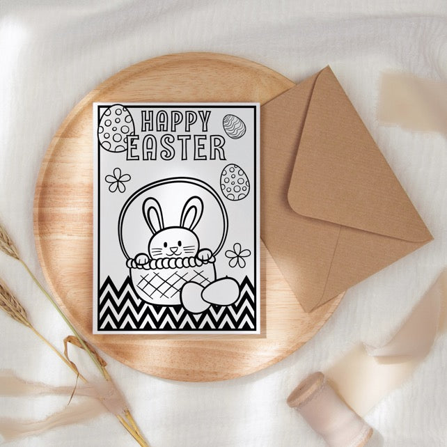 Personalised Easter Colouring Card for Kids – Bunny Colour In Easter Greeting Card