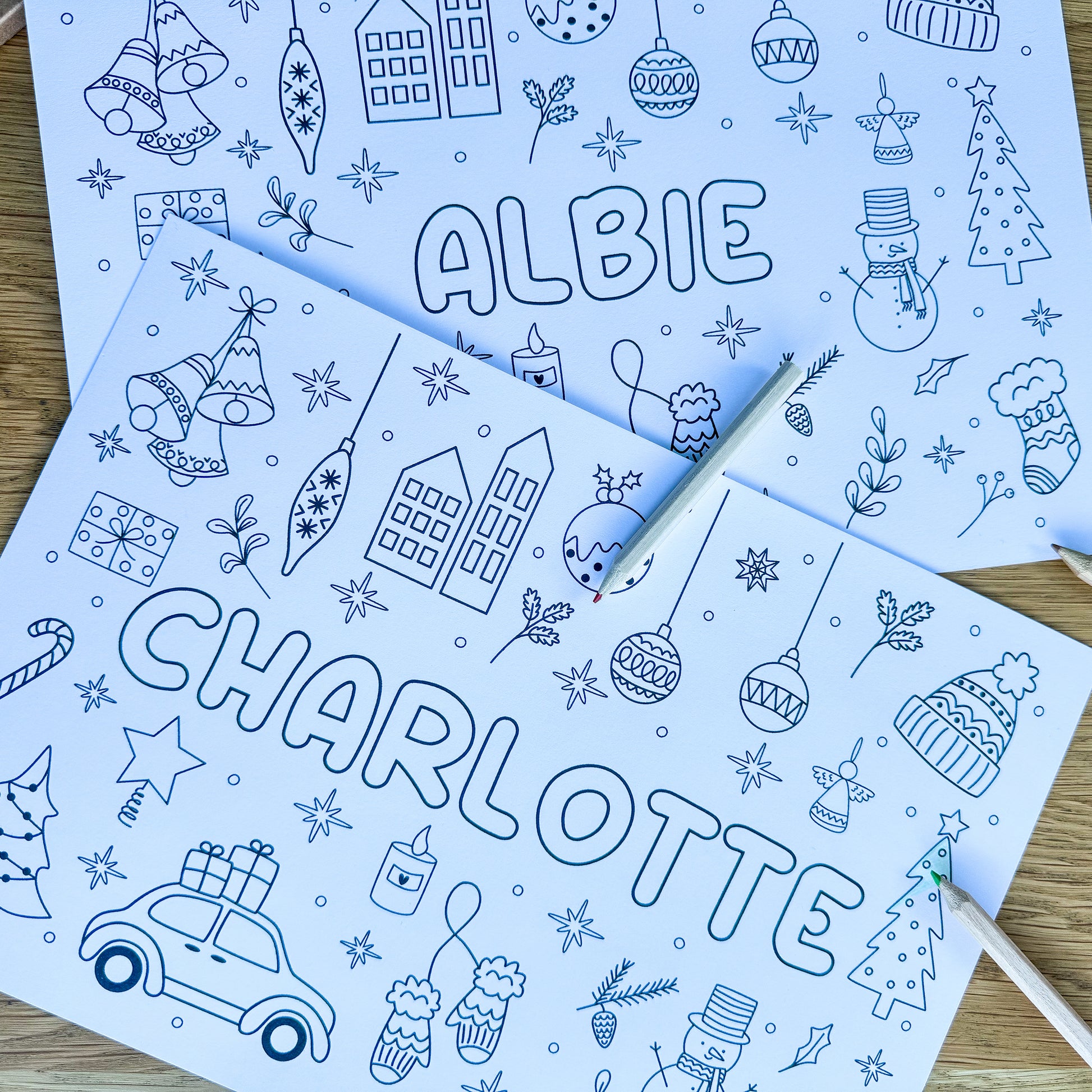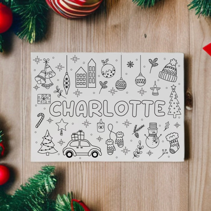 Customise with any name for a personal touch, and let the little ones explore their creativity with plenty of Christmas elements to colour in. A fun and practical addition to any festive table setting! Perfect for Christmas dinners, parties, or holiday crafts.
