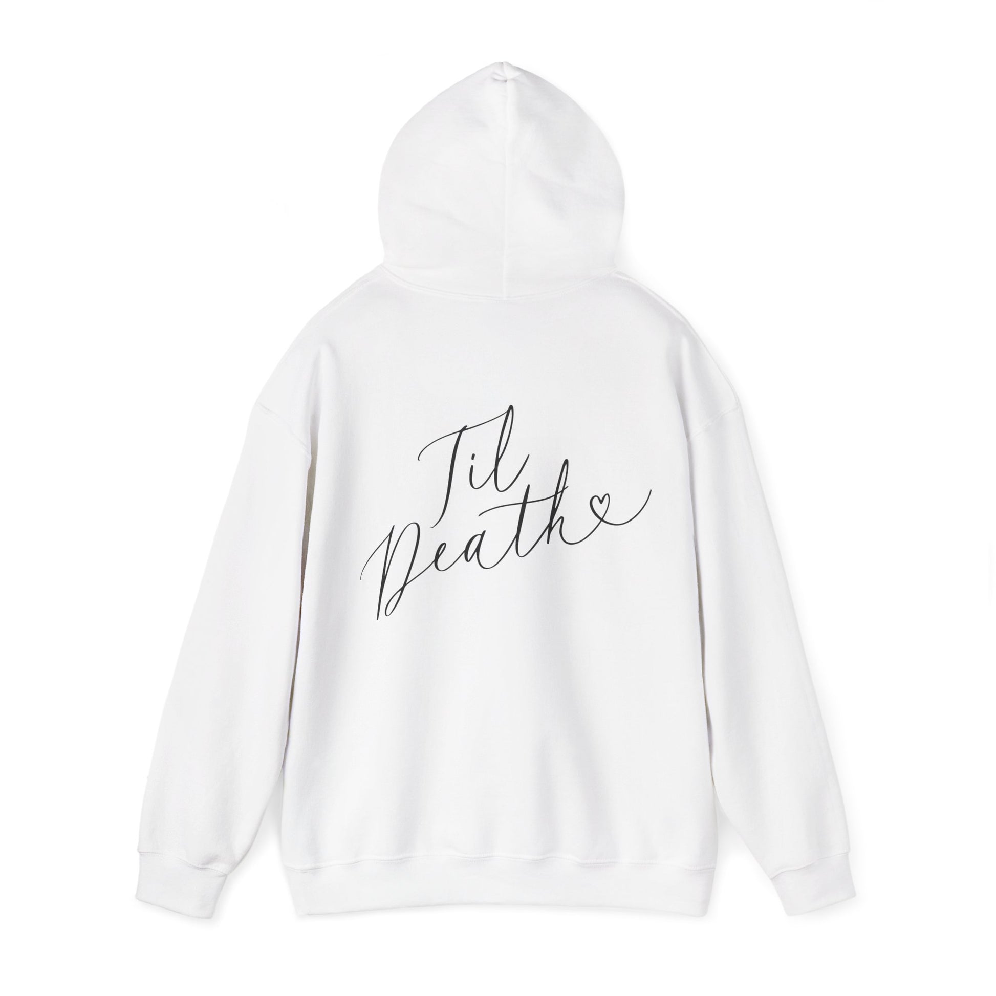 'Til Death' Script Hoodie – Minimal White Pullover with Elegant Handwritten Design