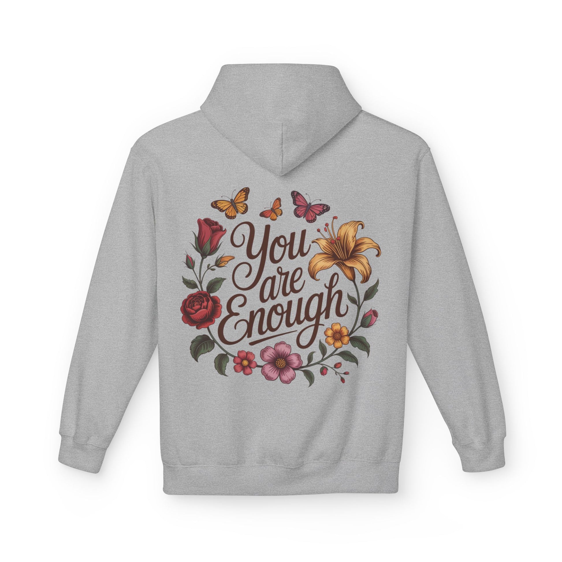 You Are Enough Floral Hoodie — Inspirational Butterfly & Flower Sweatshirt